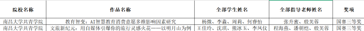 在程海燕、潘朝恺、殷芙蓉老师精心指导下的“富强民组”;以及由张升蜜、殷芙蓉老师带领的“冲就队”,在本次选拔赛中获得国赛三等奖。距今为止,我院学子本、专科组共获得国家三等奖3项,江西省一等奖1项,三等奖1项。