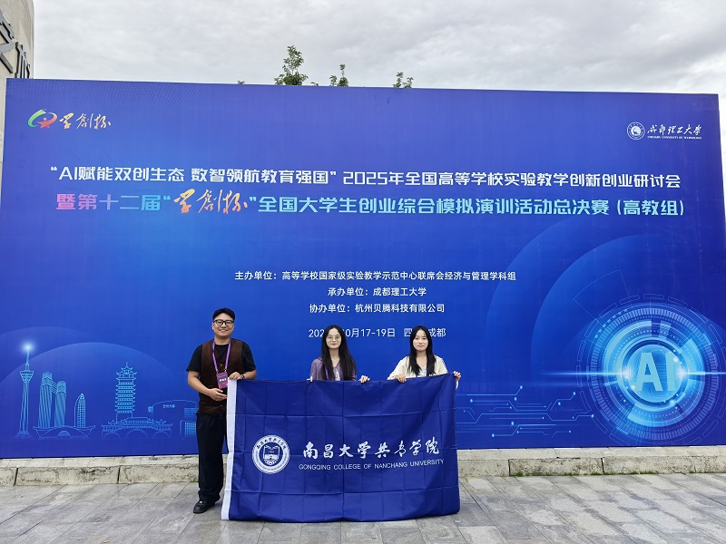 2025年10月17-19日,第十二届“学创杯”全国大学生创业综合模拟演训活动全国总决赛(高教组)在成都理工大学落下帷幕。经过激烈角逐,由经济管理学院学生黎雨晨、熊楷、曹雅欣组成的队伍(指导老师:秦斌、张升蜜)在总决赛中表现优异,综合计算计划书和软件操作两项得分,最终斩获全国一等奖,同时在先前的全国半决赛里,由经管学子吴晓瑜、王婧佳、程莉雲组成的队伍(指导老师:罗娴雯、文莉)荣获全国二等奖。