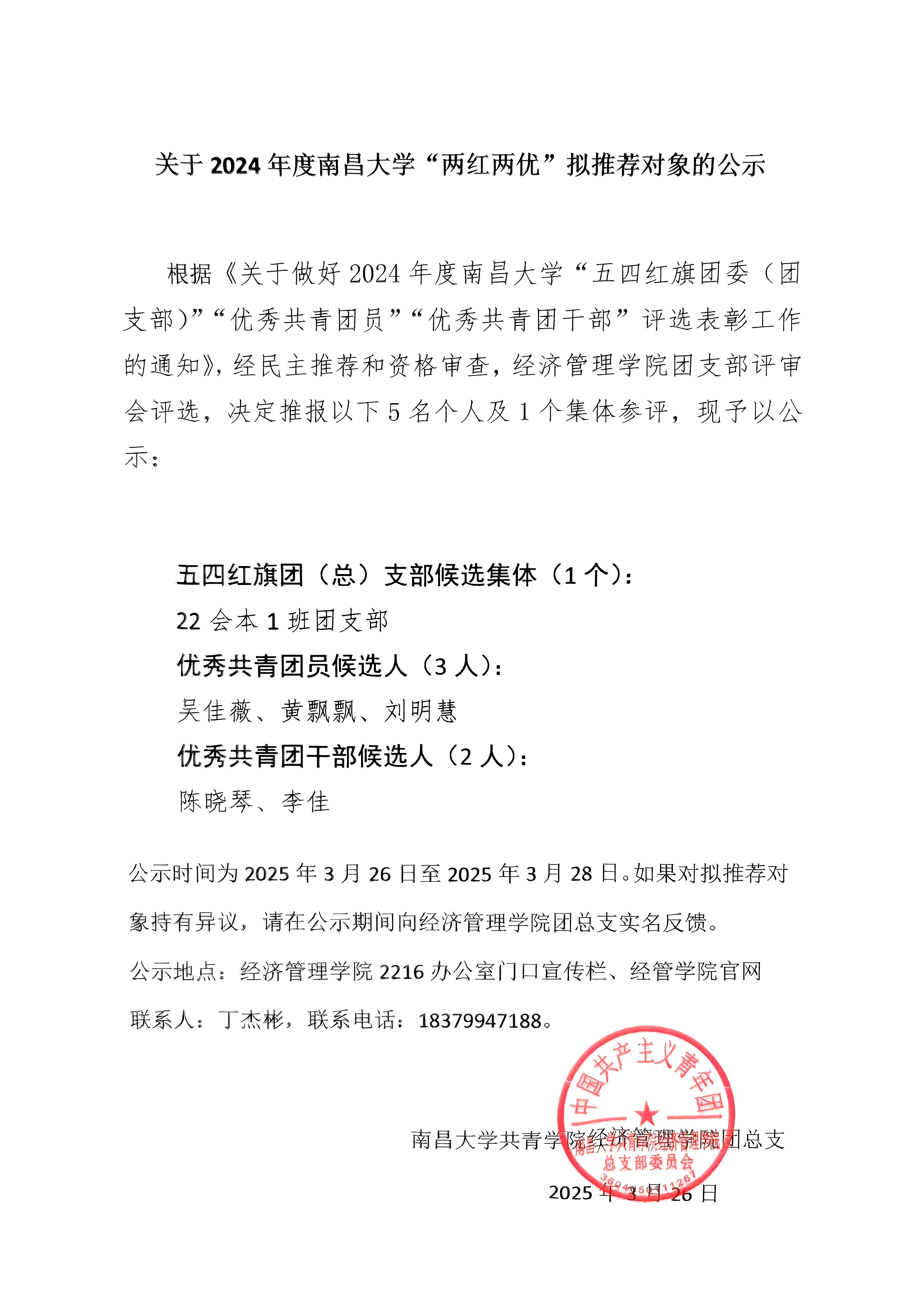 关于2024年度南昌大学“两红两优”拟推荐对象的公示